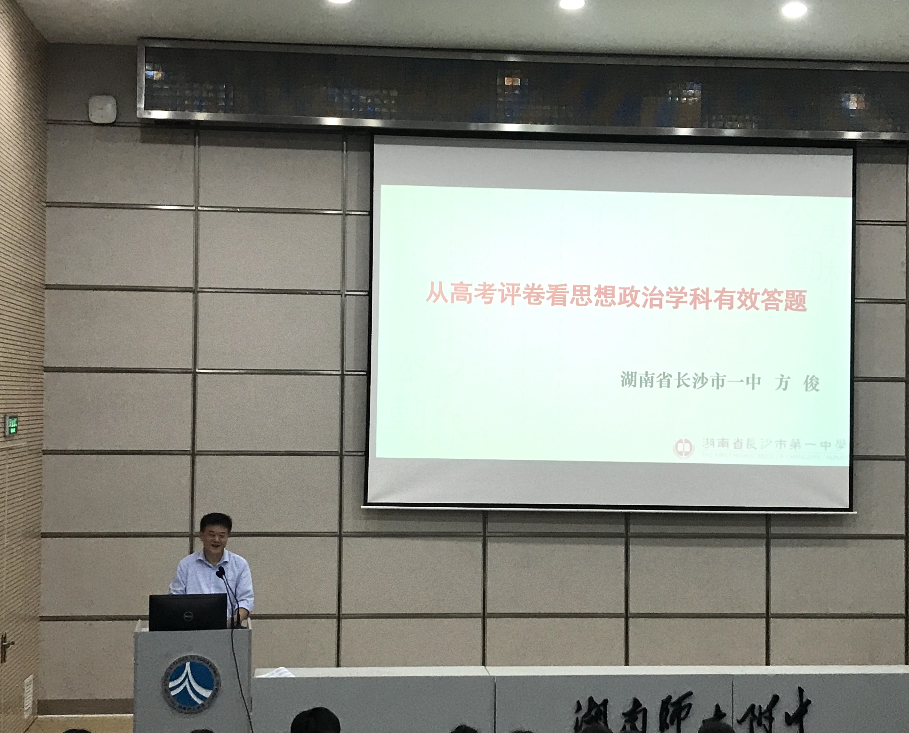2020年5月21日下午,我校高三文科备课组举办高考政治答题指导讲座,讲座由高三政治备课组组长蒋平波老师主持,邀请湖南省高考阅卷质检组组长、长沙市首席名师方俊老师来校作题为“从高考评卷看思想政治学科有效答题”的报告,为附中高三学子指点迷津、明确方向。