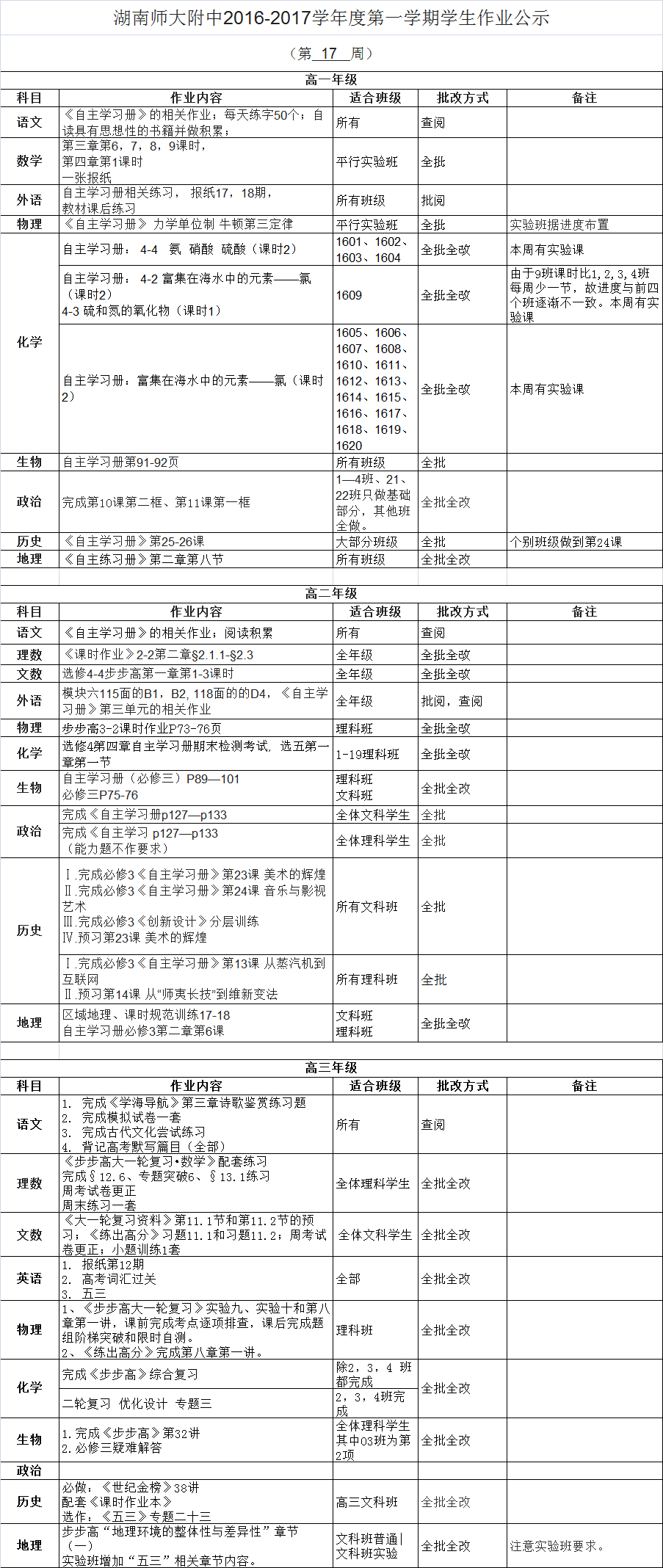 课程建设 教学资讯 课堂教学 学科竞赛 作业公示 校本课程 高考专栏 2016-2017学年度第一学期学生作业公示(第17周) 发布:教学与课程处 来源:未知 日期:2016-12-21 人气:分享到: 上一篇:2016-2017学年度第一学期学生作业公示(第16周) 下一篇:2016-2017学年度第二学期学生作业公示 (第01周) 通知公告 更多 湖南师大附中2025-2026学年度第一学 湖南师范大学附属中学2025级新生 湖南师范大学附属中学大泽湖校区 2025年湖南省基础教育教学成果奖 湖南省教育厅关于开展2025年湖南 湖南师范大学附属中学2025级新生 最新动态 更多