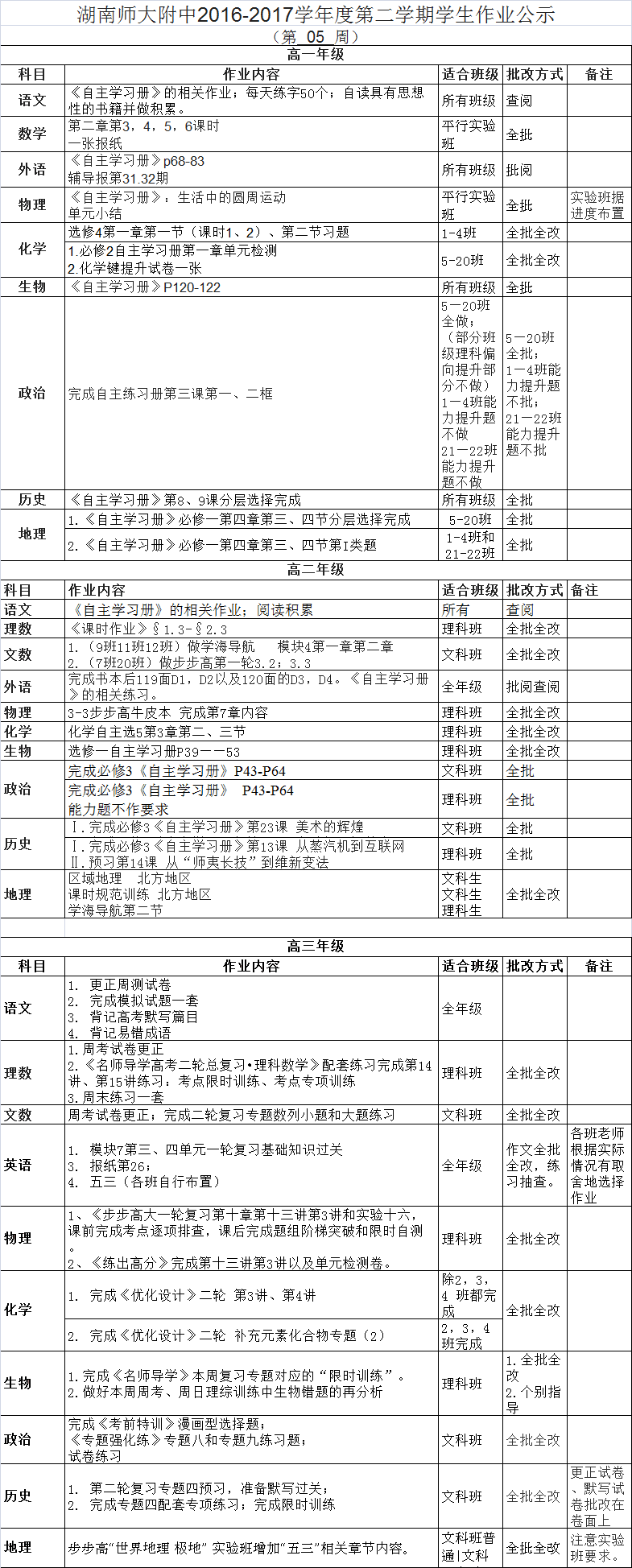 课程建设 教学资讯 课堂教学 学科竞赛 作业公示 校本课程 高考专栏 2016-2017学年度第二学期学生作业公示 (第05周) 发布:教学与课程处 来源:未知 日期:2017-03-08 人气:分享到: 上一篇:2016-2017学年度第二学期学生作业公示 (第04周) 下一篇:2016-2017学年度第二学期学生作业公示 (第06周) 通知公告 更多 湖南师大附中2025-2026学年度第一学 湖南师范大学附属中学2025级新生 湖南师范大学附属中学大泽湖校区 2025年湖南省基础教育教学成果奖 湖南省教育厅关于开展2025年湖南 湖南师范大学附属中学2025级新生 最新动态 更多