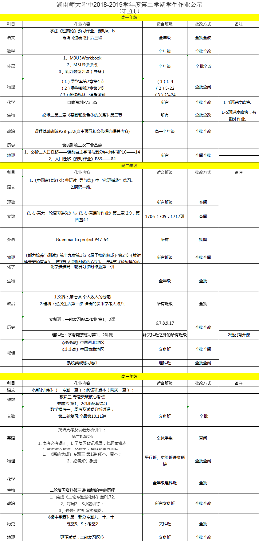课程建设 教学资讯 课堂教学 学科竞赛 作业公示 校本课程 高考专栏 18-19-2学生作业公示(第08周) 发布:课程与教学处 来源:未知 日期:2019-04-09 人气:分享到: 上一篇:18-19-2学生作业公示(第07周) 下一篇:18-19-2学生作业公示(第09周) 通知公告 更多 湖南师大附中2025-2026学年度第一学 湖南师范大学附属中学2025级新生 湖南师范大学附属中学大泽湖校区 2025年湖南省基础教育教学成果奖 湖南省教育厅关于开展2025年湖南 湖南师范大学附属中学2025级新生 最新动态 更多