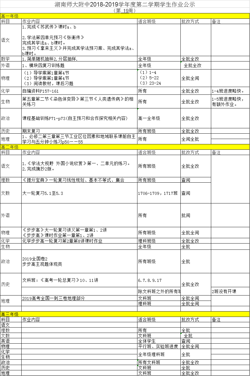 课程建设 教学资讯 课堂教学 学科竞赛 作业公示 校本课程 高考专栏 18-19-2学生作业公示(第19周) 发布:课程与教学处 来源:未知 日期:2019-07-01 人气:分享到: 上一篇:18-19-2学生作业公示(第18周) 下一篇:19-20-1学生作业公示(第01周) 通知公告 更多 湖南师范大学附属中学2025年第二 湖南师范大学附属中学2025年教师 关于开展“科研优秀奖”评选活动 湖南师大附中2025-2026学年度第一学 湖南师范大学附属中学2025级新生 湖南师范大学附属中学大泽湖校区 最新动态 更多