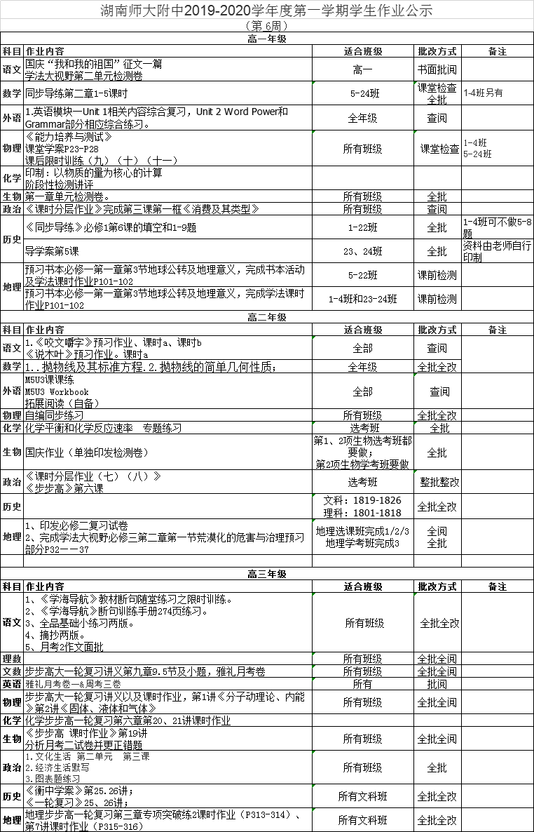 课程建设 教学资讯 课堂教学 学科竞赛 作业公示 校本课程 高考专栏 19-20-1学生作业公示(第06周) 发布:课程与教学处 来源:课程与教学处 日期:2019-10-09 人气:分享到: 上一篇:19-20-1学生作业公示(第05周) 下一篇:19-20-1学生作业公示(第07周) 通知公告 更多 湖南师范大学附属中学2025年第二 湖南师范大学附属中学2025年教师 关于开展“科研优秀奖”评选活动 湖南师大附中2025-2026学年度第一学 湖南师范大学附属中学2025级新生 湖南师范大学附属中学大泽湖校区 最新动态 更多