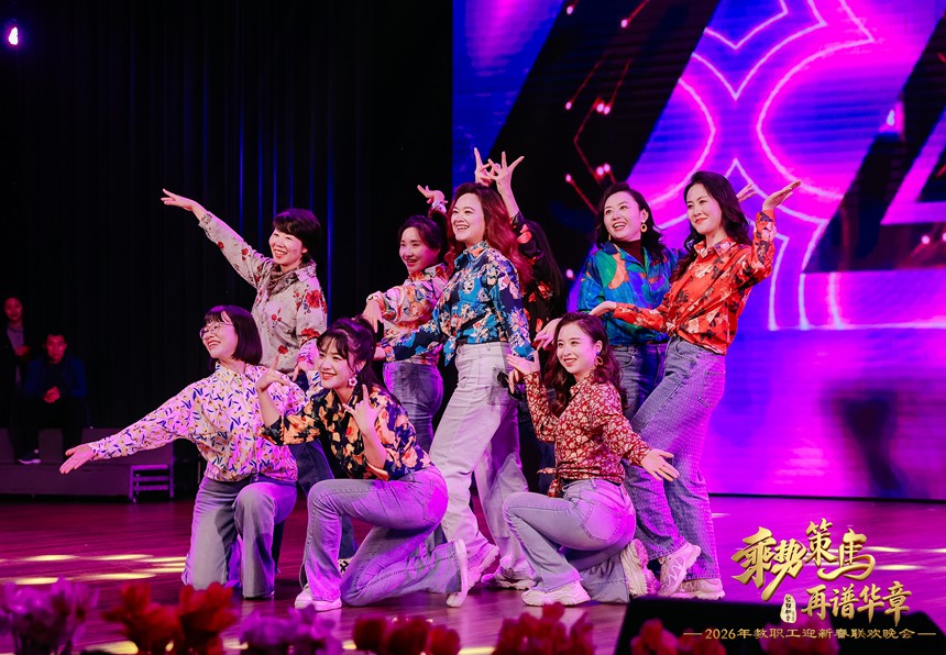 晚会压轴环节惊喜十足,行政一工会组的领导们带来舞蹈串烧《时光回响8090》。平日里严谨务实的校领导们化身“舞台达人”,以活泼灵动的舞姿展现出可爱亲民的一面,强烈的反差萌引得全场掌声雷动、喝彩不断,为晚会画上了浓墨重彩的一笔。