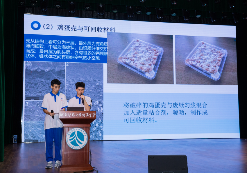 八个课题小组的团队分别从研究背景、研究过程、收获成果及感悟启示等方面进行汇报,有的小组精心录制了视频,有的小组现场实验展示了研究成果,精彩的展示赢得新高一的同学们掌声不断。