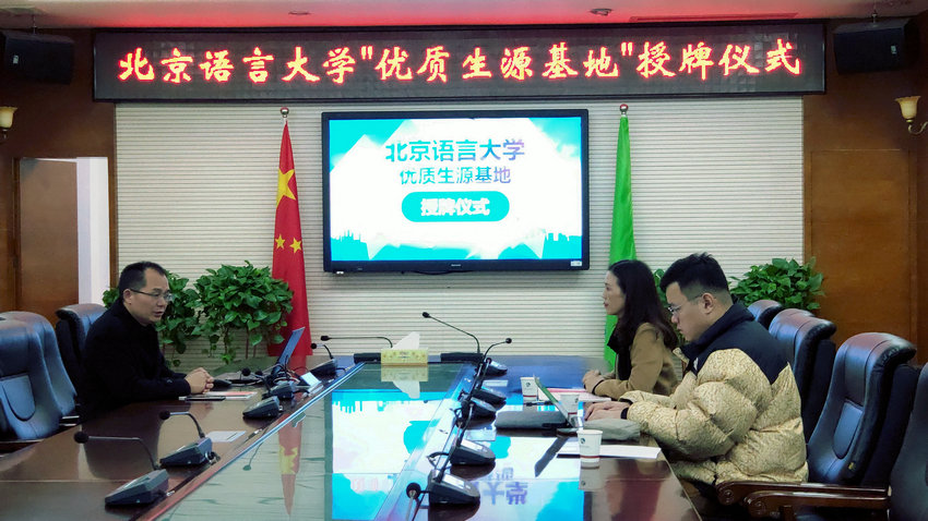 首先陈霞书记向我校介绍了北京语言大学的基本情况和优势学科,黄宇鸿主任向北语嘉宾介绍了我校基本情况及与大学的各类合作形式。随后,双方就未来可行的合作模式及新高考背景下外语学科优质生源的培养进行了探讨。