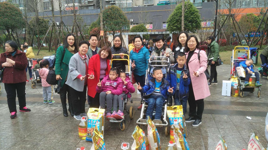 随后,盟员们与志愿者一起为脑瘫儿家庭分发捐赠物资。