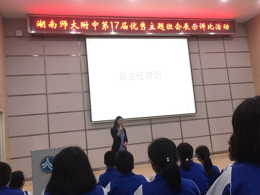 刘雄昆老师带领1713班同学展示了主题班会《解忧杂货店—写给青春的信》,张光新老师带领1704班同学展示了主题班会《孤独之旅·成长之旅》,吴浩老师带领1706班同学展示了主题班会《我想有个家》,彭如倩老师带领1709班同学展示了主题班会《滚蛋吧,挫折君!》,王心怡老师带领1721班同学展示了主题班会《修炼美丽心灵—情绪管理我能行》,明正球老师带领1714班同学展示了主题班会《爱你在心口难开—探讨家庭交流的正确打开方式》,谭天俊老师带领1722班同学展示了主题班会《认识自我,实现自我》,欧阳普老师带领1613班同学展示了主题班会《沟通从心开始》,罗娟老师带领1621班同学展示了主题班会《生态文明教育—只有一个地球》。九堂班会课内容丰富多彩,紧扣主题,具有时代感,震撼了学生心灵,充分发挥了主题班会育人功能。