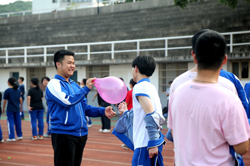 “守护梦想”是最打动人心的游戏环节。老师和孩子们一起将写有梦想的纸条塞进气球里,伸直手臂平举装有梦想的气球10分钟。“唯有付出努力,投入其中,坚持不懈,才能实现梦想。”随着时间一分一秒地过去,鼓励、加油声响彻四方,守护梦想者双臂开始微微抖动,脸颊上的汗珠晶莹剔透,心中也产生了想要放弃的念头,但他们一直“守护梦想”坚持到最后,用行动告白“胜利产生于再坚持一下的努力之中”。放飞梦想的那一刻,所有人都欢呼雀跃,逐梦前行……