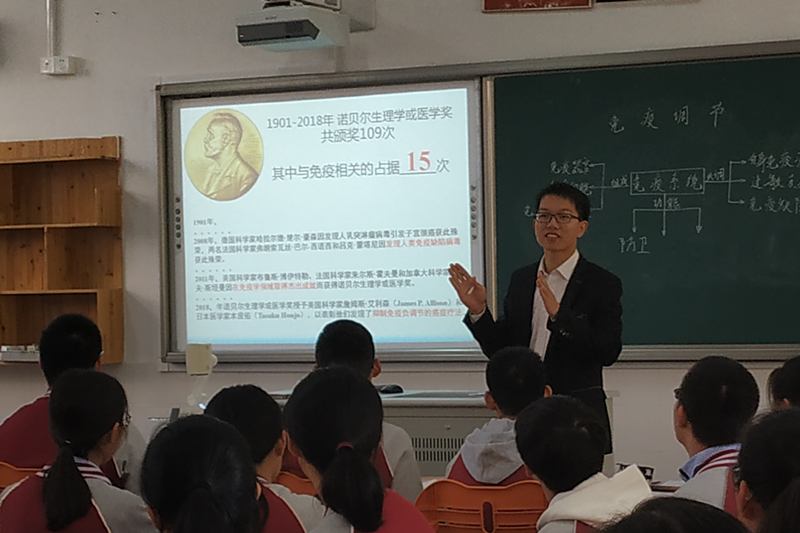 新闻中心 附中新闻 通知公告 最新动态 教育视点 集团学校新闻联播 媒体附中 工作安排 微信附中 生物组黄俊老师携课参加第四届全国高中“审美课堂”教学研讨活动 发布:校办公室 来源:课程与教学处 日期:2018-11-11 人气:分享到: 11月1日,由中国教育科学研究院、教育部中学校长培训中心、江阴市教师发展中心联合主办的第四届全国高中“审美课堂”教学研讨活动在江苏省南菁高级中学举行。活动内容包括校内外名教师同课异构、专家评课、分学科研讨和专家讲座等。中国教科院邀请的教师代表、教育部中学校长培训中心邀请的学校教师代表、南菁高级中学特邀的学校教师代表及来自全国各地高中学校的教师代表们参加了此次研讨活动。 我校生物教研组黄俊老师作为南菁高级中学特邀省外名师代表参加此次活动,并执教高三一轮复习课《免疫调节》。黄俊老师的课堂设计在深入思考“审美课堂”研讨主题的同时,围绕我校“研究型高中”建设主题,设置四大教学环节:考向研析、课前研读、课堂研讨、试题研创。整堂课复习主线清晰、紧扣考点、突破重难点,课堂教学效果突出,课后学生掌声不断。与会专家及教师一致认为该课具有启发性,为一轮复习课堂的开展开辟了新思路。 (供稿 课程教学处) 上一篇:聚焦化学核心素养 解读高中化学新课标 ——长沙市肖鹏飞中学化学名师工作室活动在我校举行 下一篇:语文组吴音莹老师赴新疆吐鲁番调研交流并作专题讲座 通知公告 更多 关于征集湖南师大附中“十五五” 湖南师大附中2026年教师招聘(第 湖南师大附中2025年教育教学成果 湖南师范大学附属中学2025年零星 关于举办第40届校园文化艺术节的 湖南师范大学附属中学2026年教师 最新动态 更多