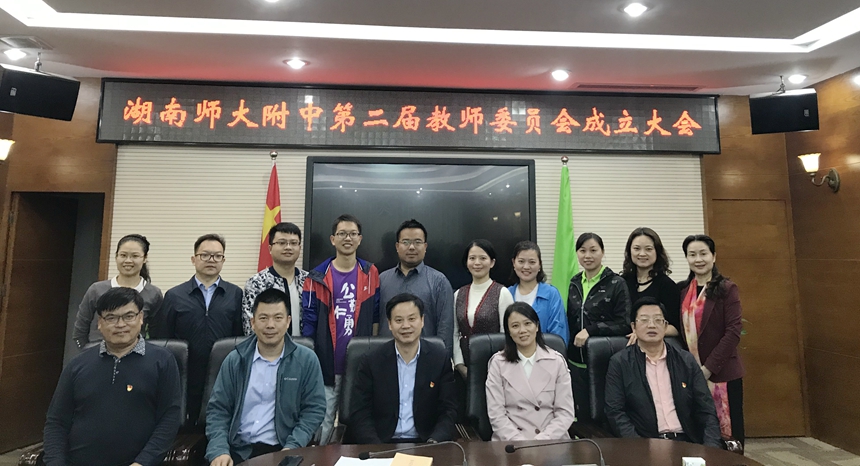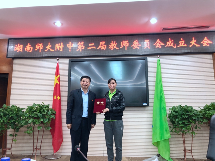 黄月初宣读第二届学校教师委员会名单,谢永红为教师委员会委员颁发聘书,陈迪勋宣读《湖南师大附中教师委员会章程》。