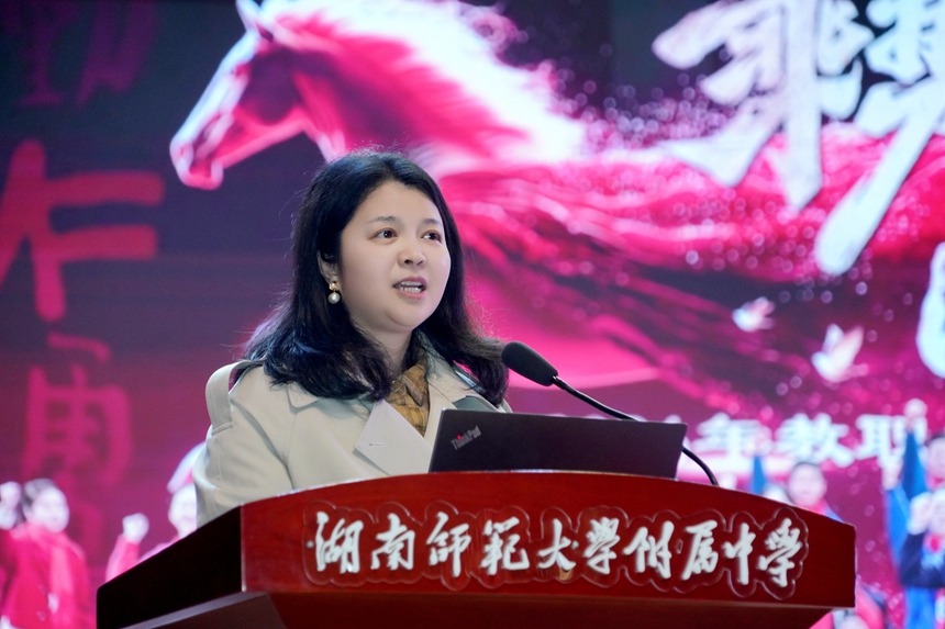 副校长李智敏以“以活动为载体,见微知著,共育未来”为主题进行学期工作总结,分享以活动育德育、从个案亮点提炼系统育人路径、聚焦真问题提升育人实效的工作思路。廖强围绕课程教学改革、拔尖创新人才培养、招生工作、科学教育与信息技术、国际部及宣传工作,简述核心推进举措。副校长许小平以 “附有安澜”“附有支撑” 等五个 “附有” 为框架,提炼校园安全保障、财务资金统筹、公益基金募集、校友资源汇聚、工会服务关怀的工作成果,并强调寒假安全注意事项。