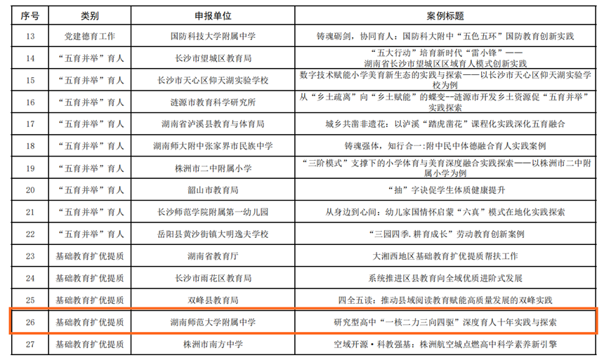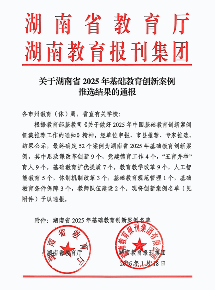 我校案例入选湖南省2025年基础教育创新案例