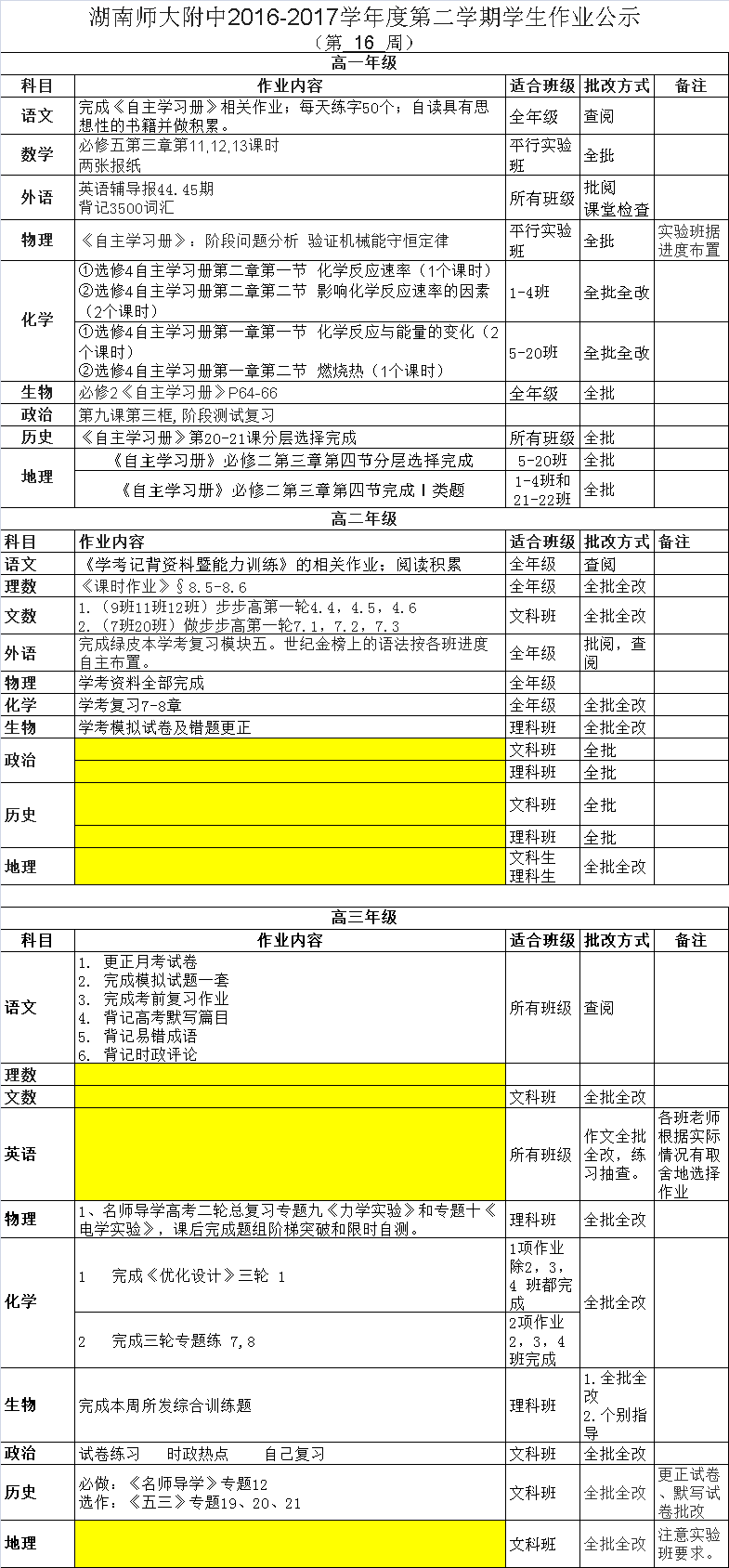 课程建设 教学资讯 课堂教学 学科竞赛 作业公示 校本课程 高考专栏 2016-2017学年度第二学期学生作业公示 (第16周) 发布:教学与课程处 来源:未知 日期:2017-06-02 人气:分享到: 上一篇:2016-2017学年度第二学期学生作业公示 (第14周) 下一篇:2016-2017学年度第二学期学生作业公示 (第17周) 通知公告 更多 湖南师范大学附属中学2025年第二 湖南师范大学附属中学2025年教师 关于开展“科研优秀奖”评选活动 湖南师大附中2025-2026学年度第一学 湖南师范大学附属中学2025级新生 湖南师范大学附属中学大泽湖校区 最新动态 更多