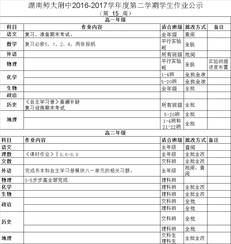 课程建设 教学资讯 课堂教学 学科竞赛 作业公示 校本课程 高考专栏 2016-2017学年度第二学期学生作业公示 (第20周) 发布:教学与课程处 来源:未知 日期:2017-06-23 人气:分享到: 上一篇:2016-2017学年度第二学期学生作业公示 (第19周) 下一篇:2016-2017学年度第二学期学生作业公示 (第15周) 通知公告 更多 湖南师大附中2025-2026学年度第一学 湖南师范大学附属中学2025级新生 湖南师范大学附属中学大泽湖校区 2025年湖南省基础教育教学成果奖 湖南省教育厅关于开展2025年湖南 湖南师范大学附属中学2025级新生 最新动态 更多