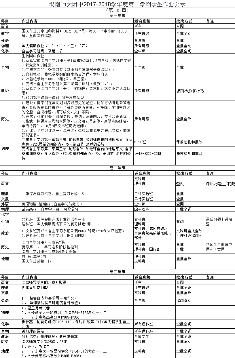 课程建设 教学资讯 课堂教学 学科竞赛 作业公示 校本课程 高考专栏 17-18-1学生作业公示(第05周) 发布:教学与课程处 来源:未知 日期:2017-11-22 人气:分享到: 上一篇:17-18-1学生作业公示(第04周) 下一篇:17-18-1学生作业公示(第06周) 通知公告 更多 湖南师大附中2025-2026学年度第一学 湖南师范大学附属中学2025级新生 湖南师范大学附属中学大泽湖校区 2025年湖南省基础教育教学成果奖 湖南省教育厅关于开展2025年湖南 湖南师范大学附属中学2025级新生 最新动态 更多