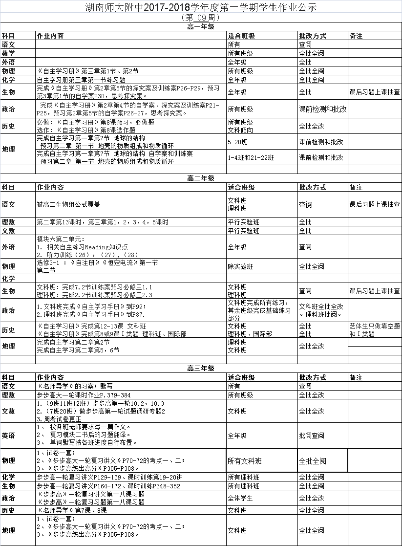 课程建设 教学资讯 课堂教学 学科竞赛 作业公示 校本课程 高考专栏 17-18-1学生作业公示(第09周) 发布:教学与课程处 来源:未知 日期:2017-11-22 人气:分享到: 上一篇:17-18-1学生作业公示(第08周) 下一篇:17-18-1学生作业公示(第10周) 通知公告 更多 湖南师范大学附属中学2025年第二 湖南师范大学附属中学2025年教师 关于开展“科研优秀奖”评选活动 湖南师大附中2025-2026学年度第一学 湖南师范大学附属中学2025级新生 湖南师范大学附属中学大泽湖校区 最新动态 更多