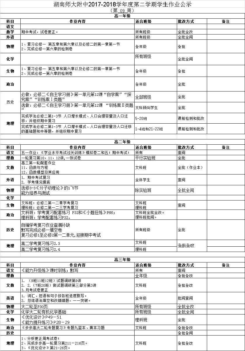 课程建设 教学资讯 课堂教学 学科竞赛 作业公示 校本课程 高考专栏 17-18-2学生作业公示(第09周) 发布:课程与教学处 来源:未知 日期:2018-05-03 人气:分享到: 上一篇:17-18-2学生作业公示(第08周) 下一篇:18-19-1学生作业公示(第02周) 通知公告 更多 湖南师范大学附属中学2025年第二 湖南师范大学附属中学2025年教师 关于开展“科研优秀奖”评选活动 湖南师大附中2025-2026学年度第一学 湖南师范大学附属中学2025级新生 湖南师范大学附属中学大泽湖校区 最新动态 更多
