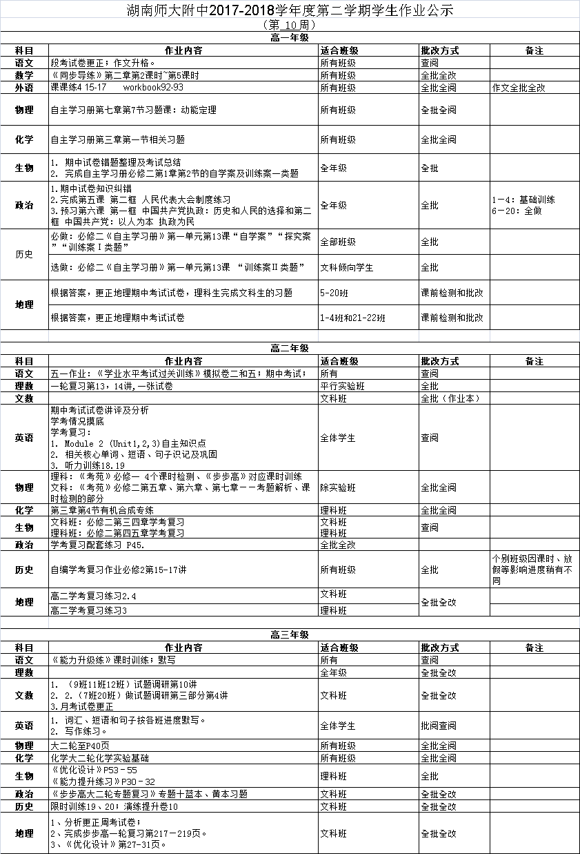 课程建设 教学资讯 课堂教学 学科竞赛 作业公示 校本课程 高考专栏 17-18-2学生作业公示(第10周) 发布:课程与教学处 来源:课程与教学处 日期:2017-05-09 人气:分享到: 上一篇:18-19-1学生作业公示(第02周) 下一篇:17-18-2学生作业公示(第11周) 通知公告 更多 湖南师大附中2025-2026学年度第一学 湖南师范大学附属中学2025级新生 湖南师范大学附属中学大泽湖校区 2025年湖南省基础教育教学成果奖 湖南省教育厅关于开展2025年湖南 湖南师范大学附属中学2025级新生 最新动态 更多