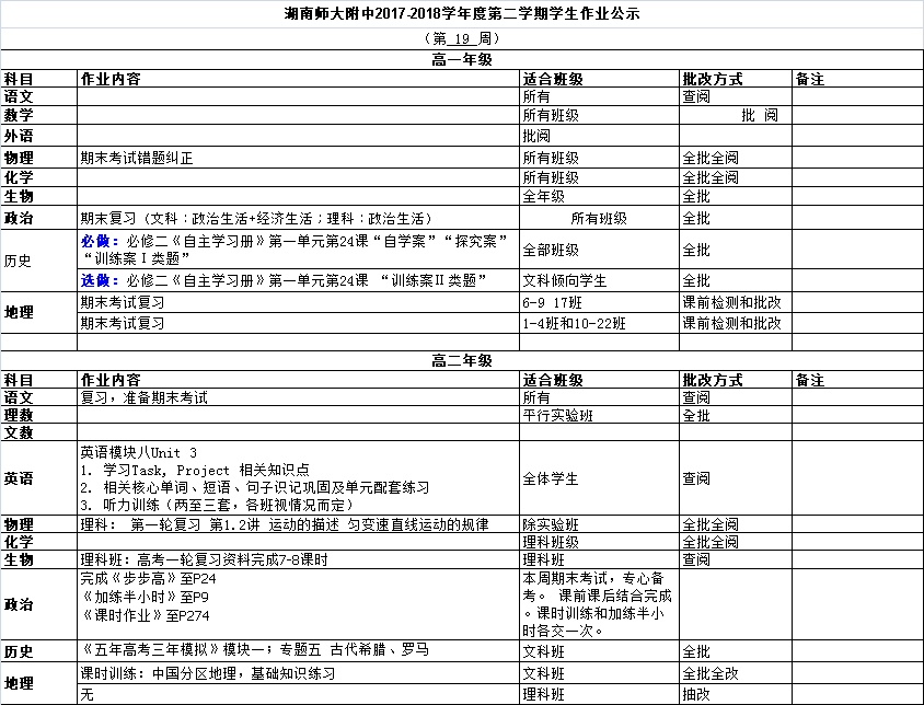 课程建设 教学资讯 课堂教学 学科竞赛 作业公示 校本课程 高考专栏 17-18-2学生作业公示(第19周) 发布:课程与教学处 来源:课程与教学处 日期:2018-09-12 人气:分享到: 上一篇:17-18-2学生作业公示(第18周) 下一篇:18-19-1学生作业公示(第03周) 通知公告 更多 湖南师大附中2025-2026学年度第一学 湖南师范大学附属中学2025级新生 湖南师范大学附属中学大泽湖校区 2025年湖南省基础教育教学成果奖 湖南省教育厅关于开展2025年湖南 湖南师范大学附属中学2025级新生 最新动态 更多