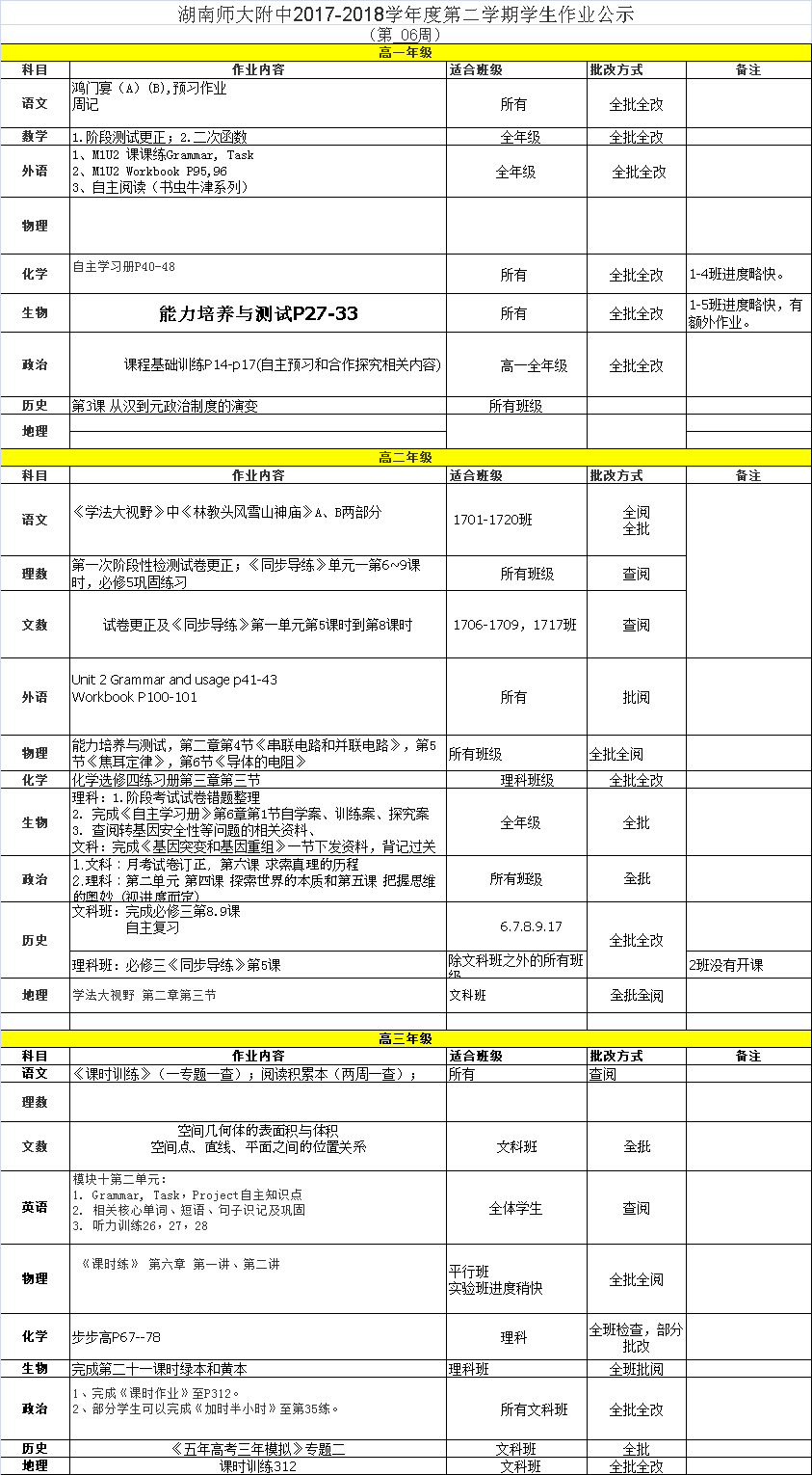 课程建设 教学资讯 课堂教学 学科竞赛 作业公示 校本课程 高考专栏 18-19-1学生作业公示(第06周) 发布:课程与教学处 来源:未知 日期:2018-10-12 人气:分享到: 上一篇:18-19-1学生作业公示(第05周) 下一篇:18-19-1学生作业公示(第07周) 通知公告 更多 湖南师范大学附属中学2025年第二 湖南师范大学附属中学2025年教师 关于开展“科研优秀奖”评选活动 湖南师大附中2025-2026学年度第一学 湖南师范大学附属中学2025级新生 湖南师范大学附属中学大泽湖校区 最新动态 更多