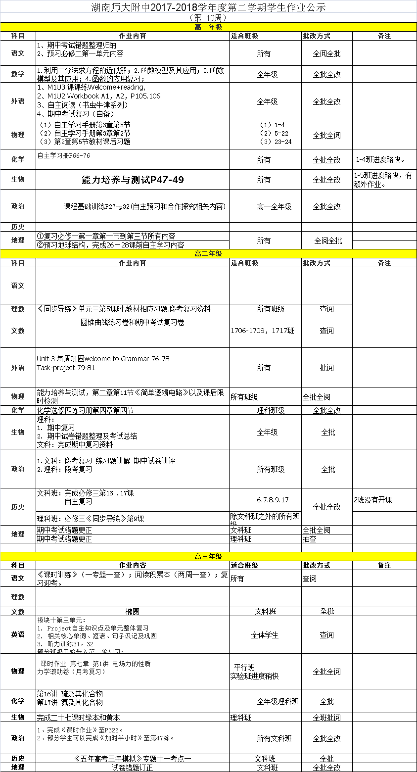 课程建设 教学资讯 课堂教学 学科竞赛 作业公示 校本课程 高考专栏 18-19-1学生作业公示(第10周) 发布:课程与教学处 来源:未知 日期:2018-11-07 人气:分享到: 上一篇:18-19-1学生作业公示(第09周) 下一篇:18-19-1学生作业公示(第11周) 通知公告 更多 湖南师范大学附属中学2025年第二 湖南师范大学附属中学2025年教师 关于开展“科研优秀奖”评选活动 湖南师大附中2025-2026学年度第一学 湖南师范大学附属中学2025级新生 湖南师范大学附属中学大泽湖校区 最新动态 更多