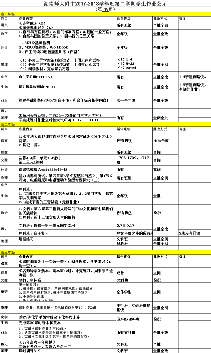 课程建设 教学资讯 课堂教学 学科竞赛 作业公示 校本课程 高考专栏 18-19-1学生作业公示(第18周) 发布:课程与教学处 来源:未知 日期:2018-12-24 人气:分享到: 上一篇:18-19-1学生作业公示(第17周) 下一篇:18-19-1学生作业公示(第19周) 通知公告 更多 湖南师范大学附属中学2025年第二 湖南师范大学附属中学2025年教师 关于开展“科研优秀奖”评选活动 湖南师大附中2025-2026学年度第一学 湖南师范大学附属中学2025级新生 湖南师范大学附属中学大泽湖校区 最新动态 更多