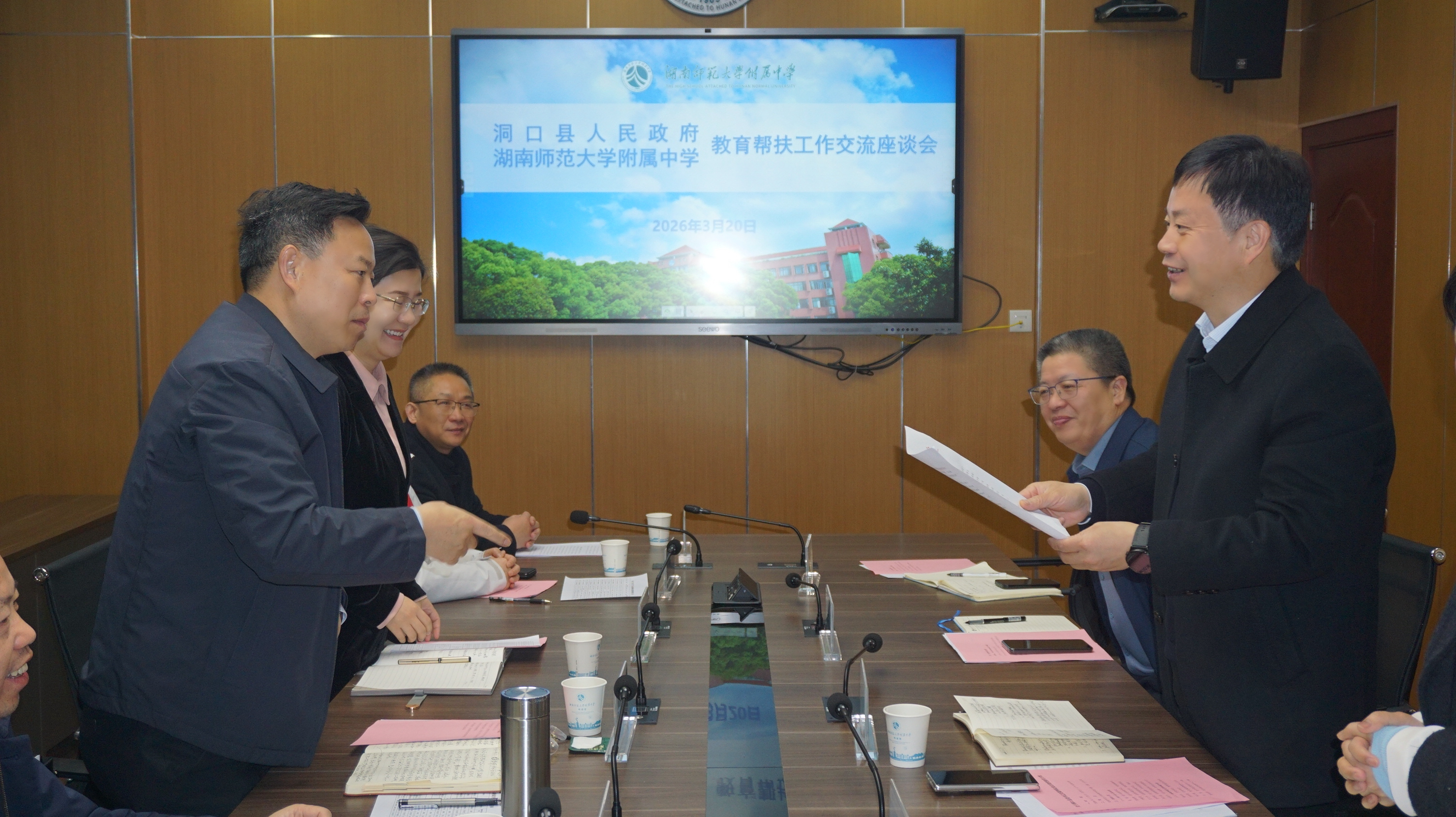 洞口县委副书记、统战部长郭向荣宣读县委、县政府致湖南师大附中的感谢信。吴韬书记表示,洞口教育实现从“跟跑”到“并跑”的跨越离不开附中的真情帮扶。一批批研修教师如种子播撒全县,带动全域教育提质,真正实现“一人学习、全体受益、全域提升”。下一步将健全机制,持续放大帮扶效应,推动校地合作走深走实。