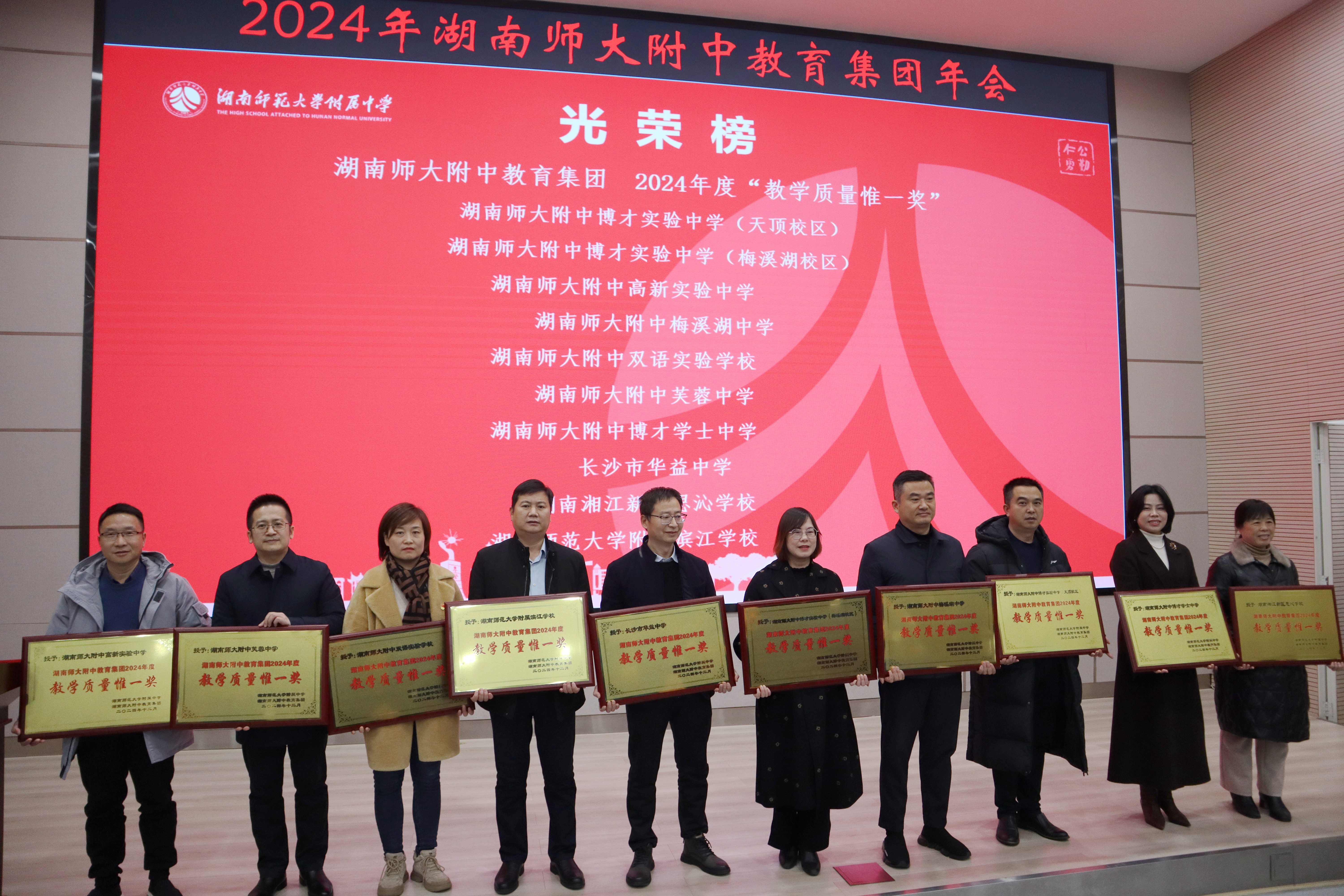苏建祥宣读《湖南师大附中教育集团关于授牌“拔尖创新人才培养基地校”的决定》、教育集团办公室主任李文昭宣读《湖南师大附中教育集团关于表彰2024年度“先进集体”、“先进个人”的决定》,全体校领导为9所基地校授牌,并为获奖集体和个人颁奖。