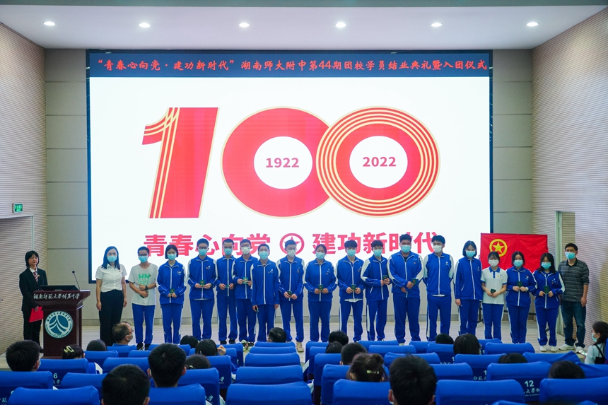 苏建祥宣读了湖南师大附中2022年新团员名单。第44期少年团校共有247名学员,经过为期两个月的学习及考核,216名同学顺利结业,并通过支部大会通过表决、公示,光荣加入中国共产主义青年团。
