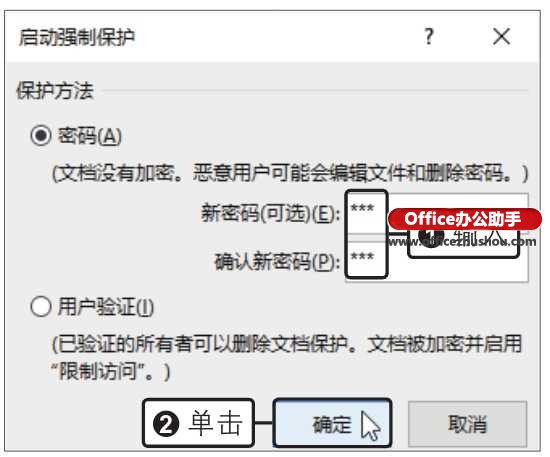 弹出“启动强制保护”对话框,在“新密码”文本框中输入“123”,在“确认新密码”文本框中再次输入“123”,单击“确定”按钮,如下图所示。