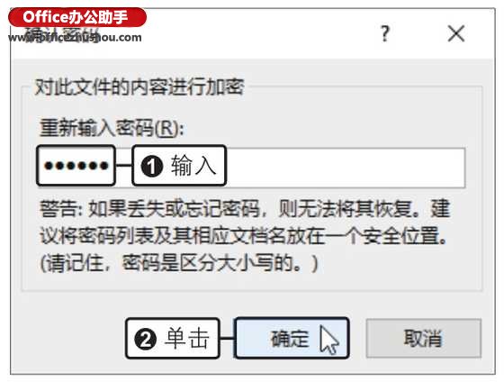弹出“确认密码”对话框,在“重新输入密码”文本框中输入“123456”,单击“确定”按钮,如下图所示。