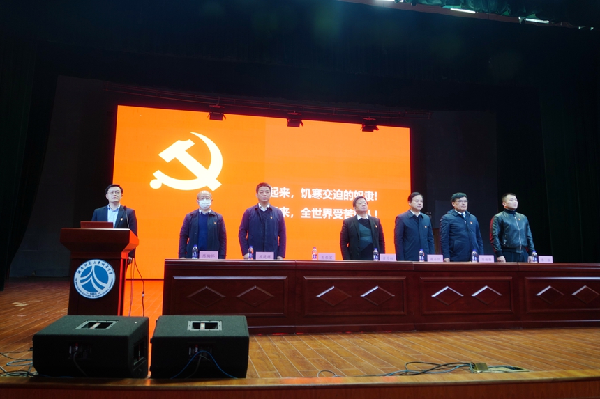 全体起立,唱《国际歌》后,彭荣宏宣读新学期党支部支委成员调整名单。