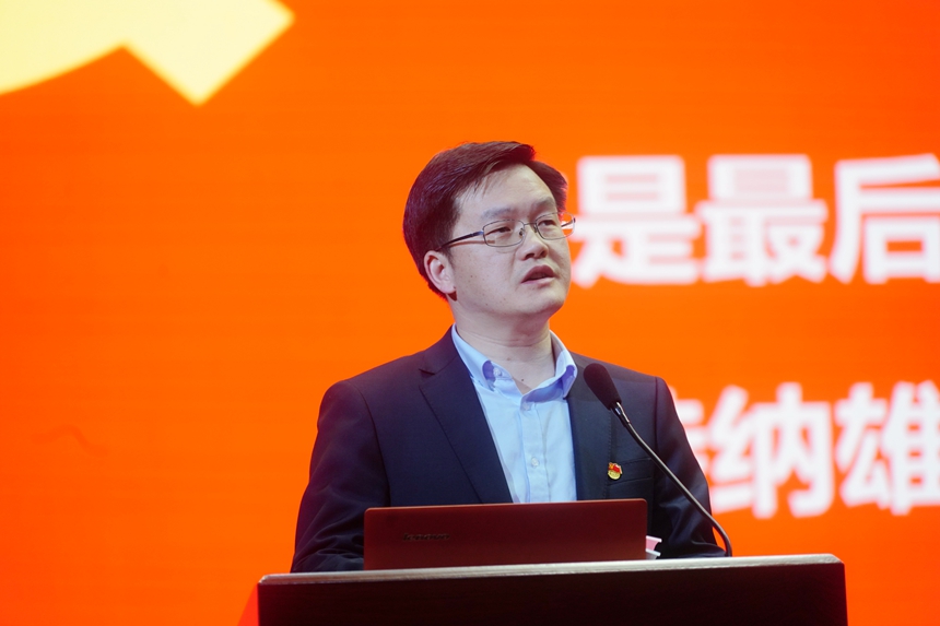 黄月初以《启航十四五,奋斗新征程》为主题作新学期党委工作报告。他首先总结了上学期党委工作实效,对本学期党建工作重点做出部署重点就“如何做附中合格的共产党员”做出阐述,他提出,做附中合格的共产党员要积极投身研究型中学建设,要做一名时刻自省的良师。他还用四组关键词概括抗美援朝精神内核,激励附中党员们,自强不息、追求卓越,勇往直前。最后他引用《人民日报》热门文章《你凭什么在单位立足》,号召党员们要凭真诚、负责、沟通、进取等多项本事在附中立足,助力学校从优秀走向卓越。
