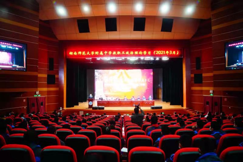 3月1日上午,我校教职工政治学习活动在学生活动中心隆重举行。本次活动的主题是“奋斗吧,了不起的附中人”,着力弘扬艰苦奋斗的精神。校长谢永红,党委书记黄月初,副校长陈迪勋,纪检书记李春莲,副校长苏建祥,挂职副校长杜军,国家万人教学名师肖鹏飞,抗美援朝老战士、学校离休教师钟辑安等在主席台就座,全校教职员工参加了学习。活动由校团委书记李钊主持。