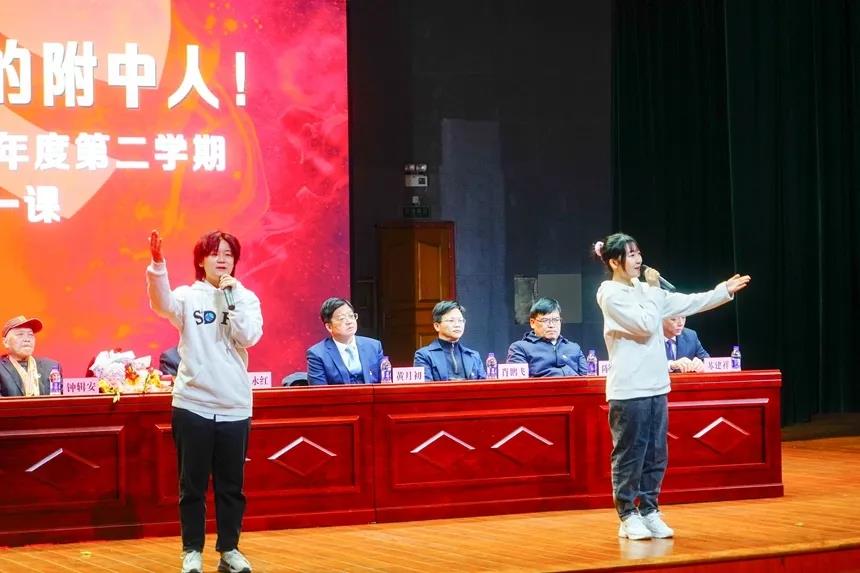 随后,吴音玥和周熙睿两位同学合唱歌曲《仰望星空》,动听的歌声中寄寓着对奋斗征程的满满期许。