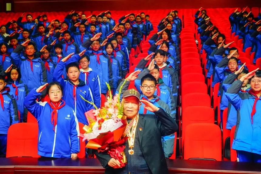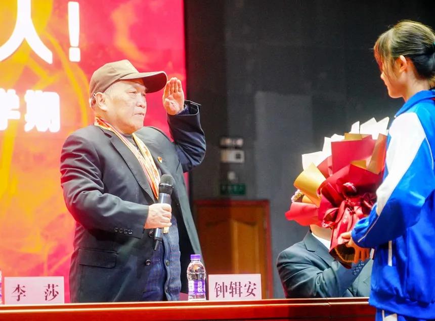 在全场齐声高唱国歌、校歌后,学生代表李步言作为红色故事传讲人,讲述抗美援朝英雄钟辑安的传奇人生。