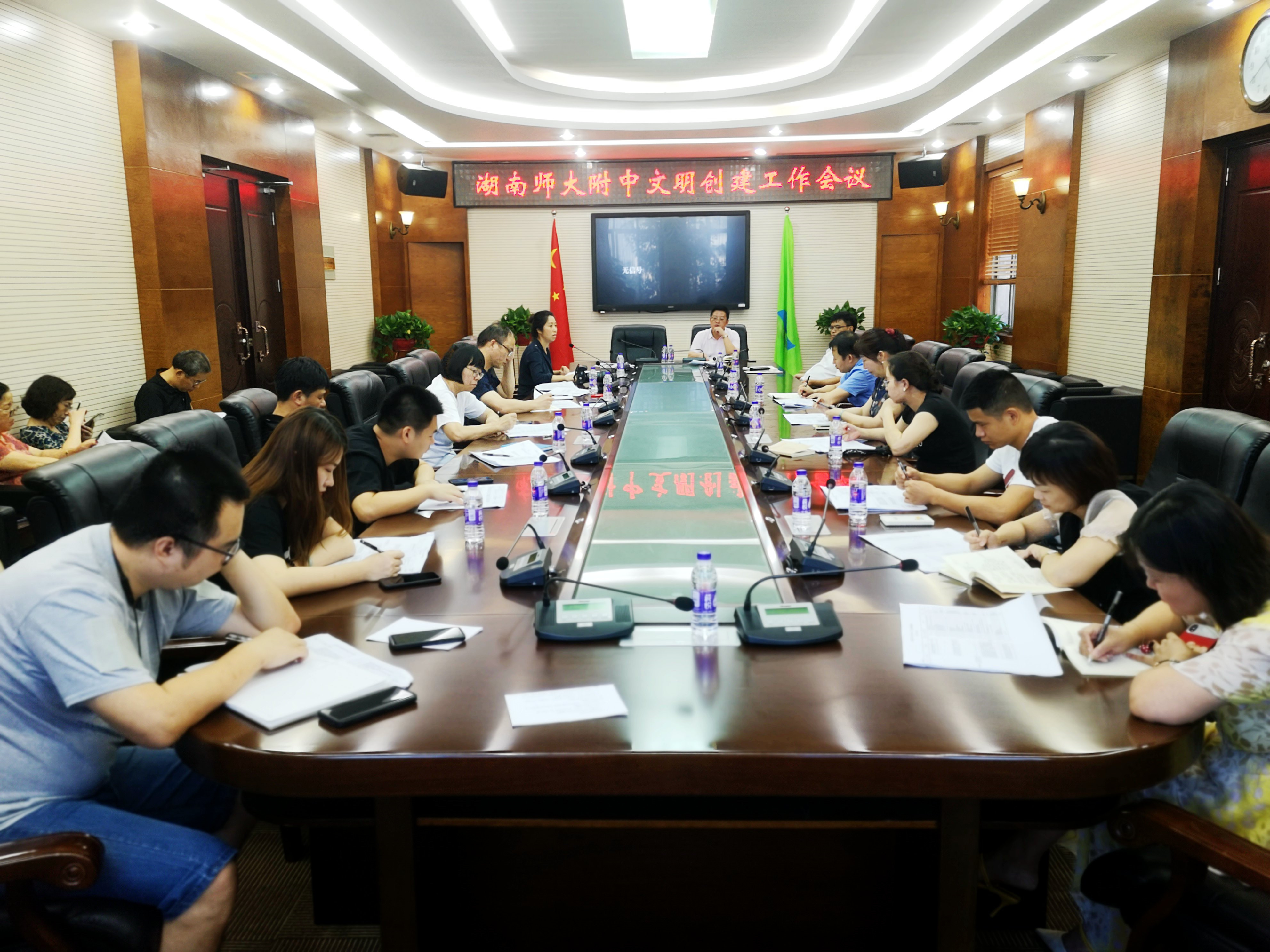 文明办主任苏晓玲传达了22日上午长沙市教育系统文明创建工作会议精神,并对文明校园测评细则进行了解读和下阶段工作部署。校办公室主任莫晖和党办主任伏炎安根据往年整理材料的经验进行了重要补充。