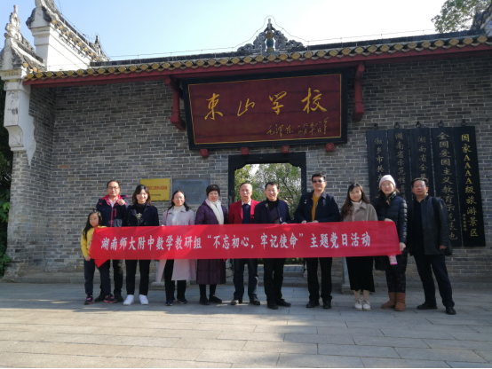 为进一步学习和发扬党的光荣传统与优良作风,激发教师爱国爱党热情,进一步增强教研组的凝聚力与战斗力, 12月7日至8日,数学教研组组织全体党员教师、民主党派教师及部分非党员教师共35人赴湘乡陈赓故居、东山书院开展“不忘初心、牢记使命”主题党日活动,共同追寻红色记忆,传承革命精神。