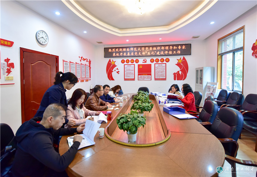 为推进党支部“五化”建设,10月31日,湖南师范大学基层党支部“五化”建设第六评估小组组长、组织部副部长彭建国带领评估专家龚洁、刘英对我校党支部建设进行督查。在我校党委书记黄月初、党委办公室主任伏炎安的陪同下,评估小组听取了2016级党支部书记陈兵、联合教研组党支部书记汤彬、行政综合三党支部书记李智敏、校友会党支部书记谭伟的简要工作汇报,查看了以上四个党支部的支部工作记录等资料,并对照《中小学党支部“五化”建设合格评估标准》逐项进行量化打分,最后形成综合评价意见。