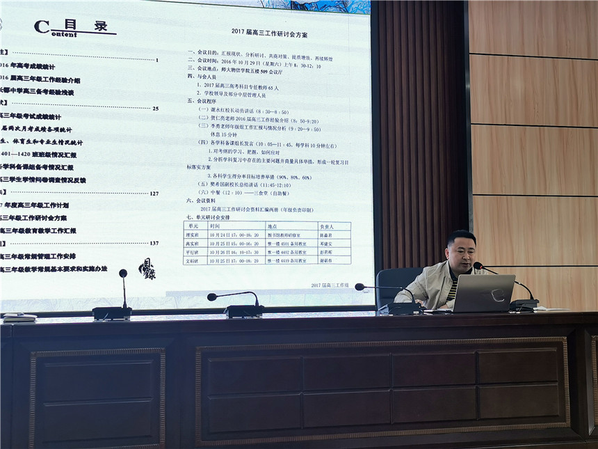 宣传委员李勇同志担任了多年的年级组长,积累了丰富的年级管理工作实践经验,对溆浦一中全体老师做了“高三复习与管理”专题报告。报告中数据详尽、图文并茂,有具体的高三教育教学管理的具体举措和策略,有效促进了校际互通和传帮带式的分享与交流。