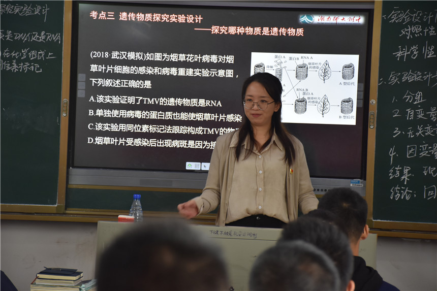 师大附中高三生物备课组周娈老师以“遗传物质的探究实验设计”为主题,为溆浦一中高三师生带来一堂高效的一轮复习示范课。同时溆浦一中的邹伟老师、张先锋老师、唐春霞老师也分别精心准备了一堂高三文科数学课、高三物理课、高三地理课共同进行研讨交流。授课结束,师大附中的老师与溆浦一中的老师就所授的几堂研讨课进行沟通和交流,本着完善复习策略,提高备考效率的目的,两校老师就如何落实教育教学理念,深化课堂教学改革进行了深入研讨。
