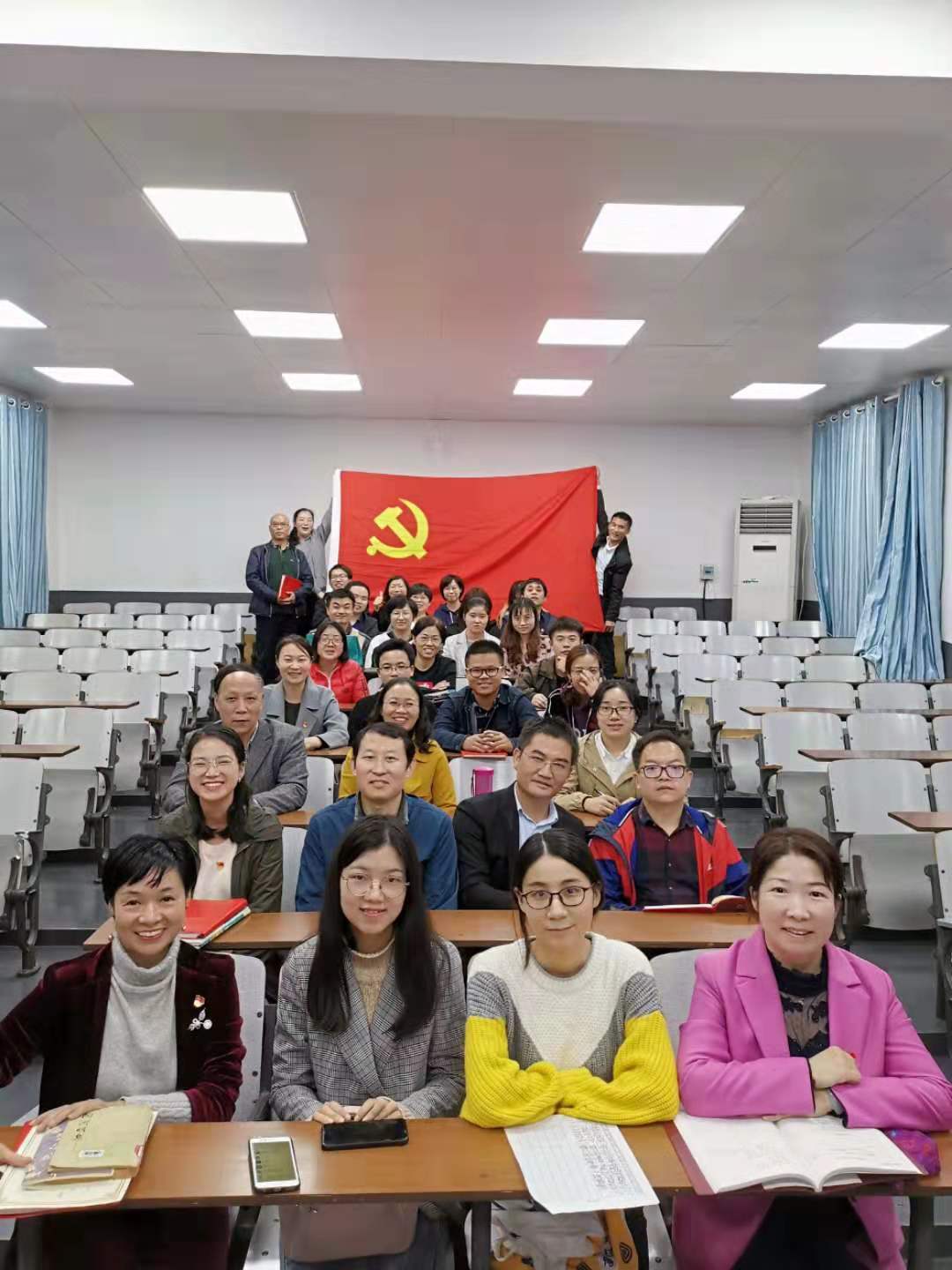 最后,大家在党旗下合影留念。