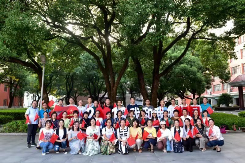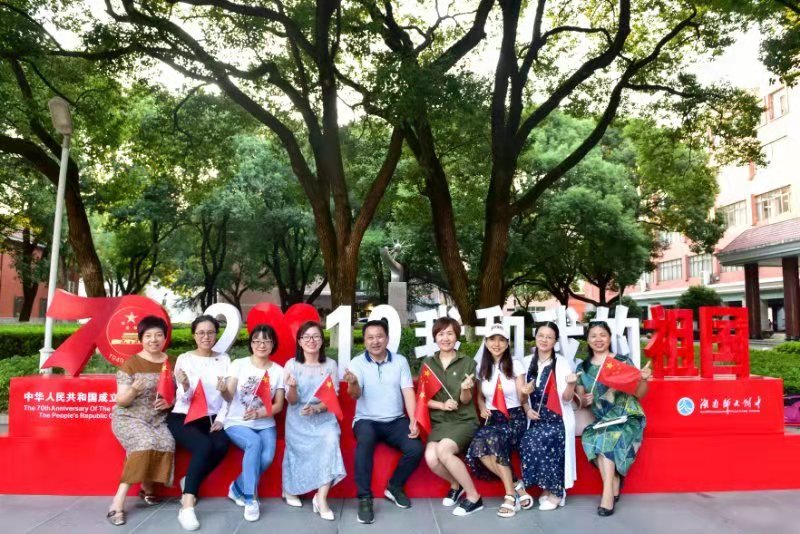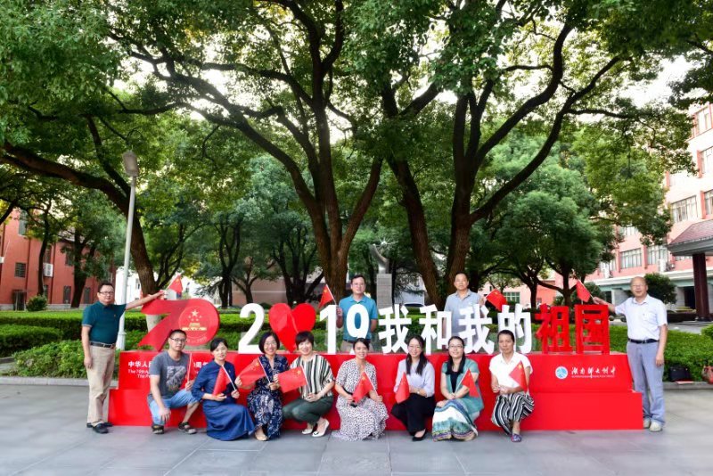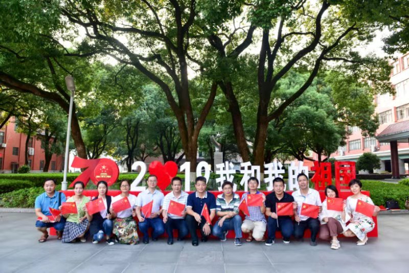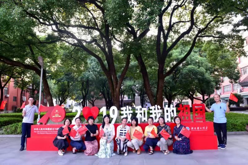 最后大家在学校攀登广场“2019我和我的祖国”标语牌前合影留念。