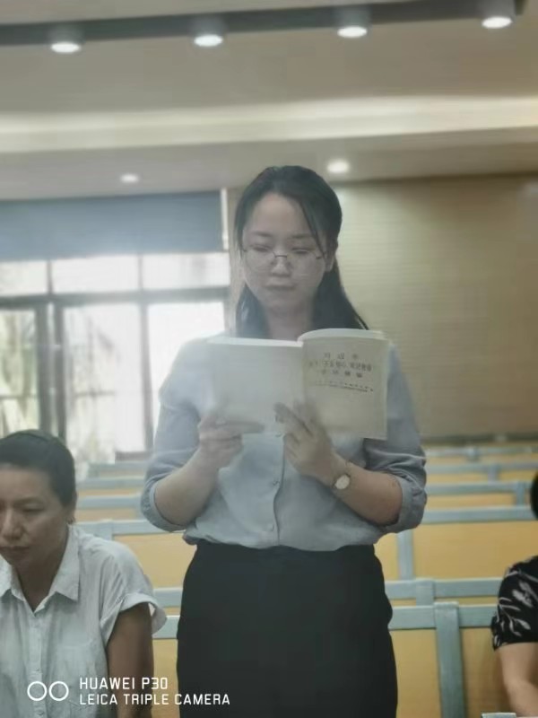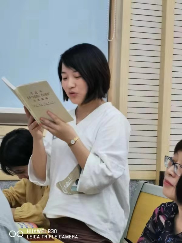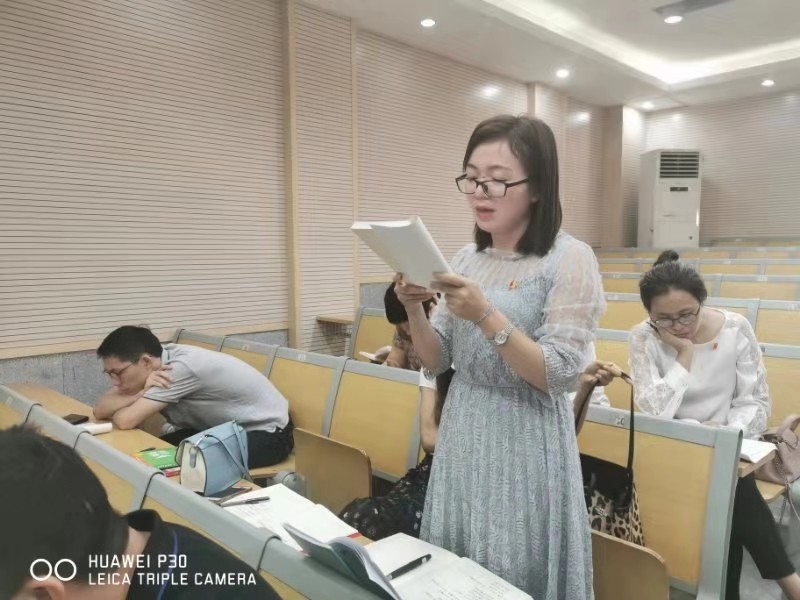 随后,周彦同志倡导大家以个性朗读的方法来关注《习近平关于“不忘初心,牢记使命”论述摘编 》的细节。肖莉、闵娟、梁梁、周娈、王春梅、雍琼、王海波、刘冉旭等8名党员积极响应,用她们饱含深情的朗读,表达了党员们“不忘初心,牢记使命”的认同感和决心。大家深受感染。
