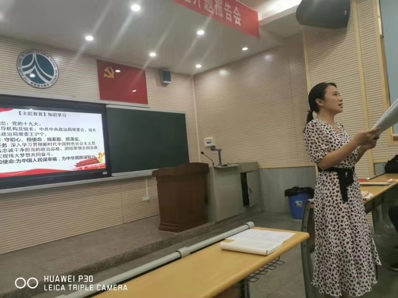 活动开始,由支部书记杨群英同志带领全体党员学习了《习近平关于“不忘初心、牢记使命”论述摘编》的主要知识。杨书记先谈到党员学习的重要性和必要性,然后通过PPT归纳了《习近平关于“不忘初心,牢记使命”论述摘编 》的知识要点,最后还谈到本年度党支部规范建设的具体做法。