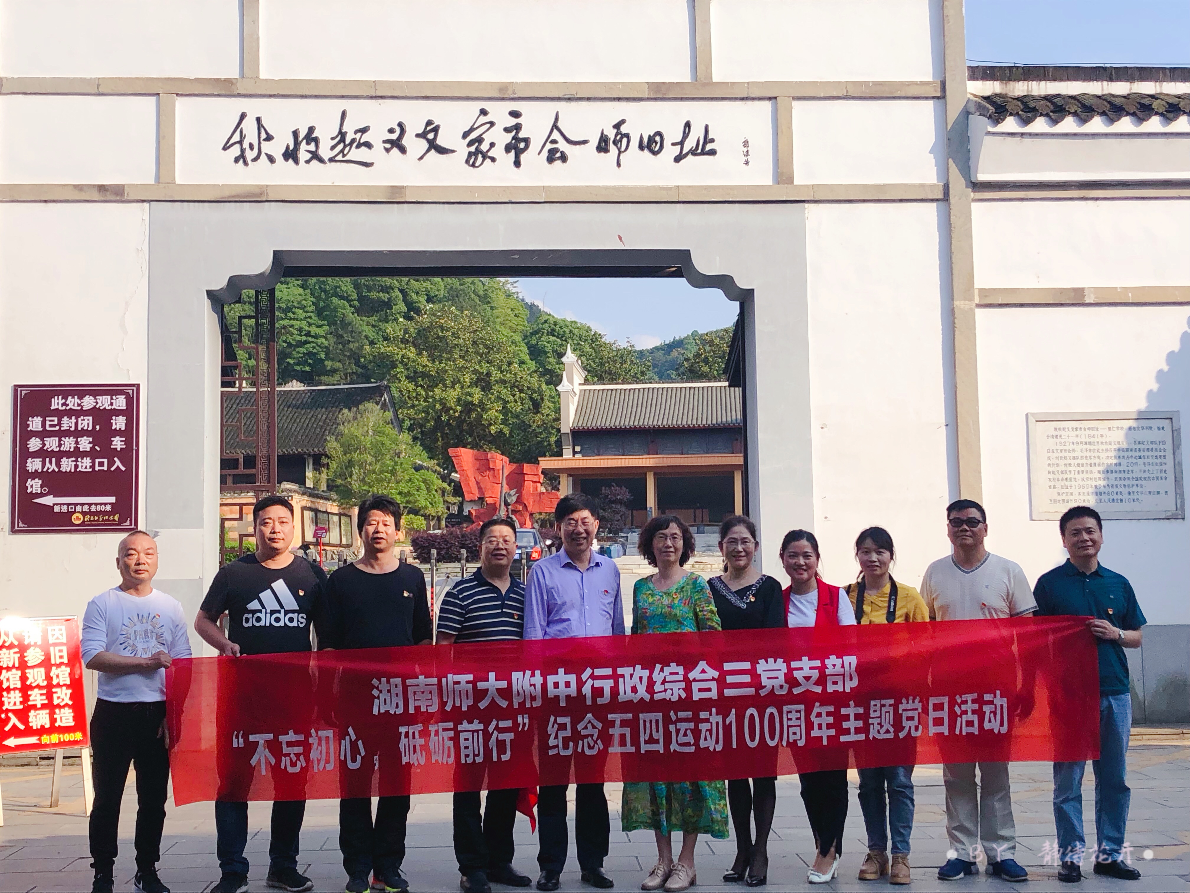 为纪念五四运动100周年,全面推进党支部的组织建设, 5月11-12日,在党委委员、副校长罗培基和支部书记李文昭的带领下,行政综合三党支部11人前往革命老区浏阳市秋收起义文家市会师旧址、胡耀邦故居开展“不忘初心、砥砺前行”主题党日活动。