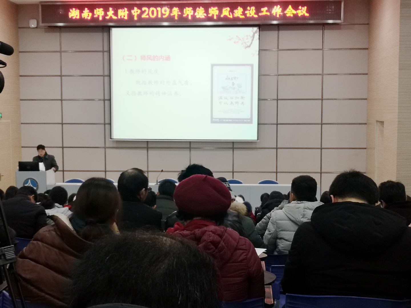 会议发放《湖南师大附中教职工加强师德师风建设承诺书》,全体教职工庄严签字。