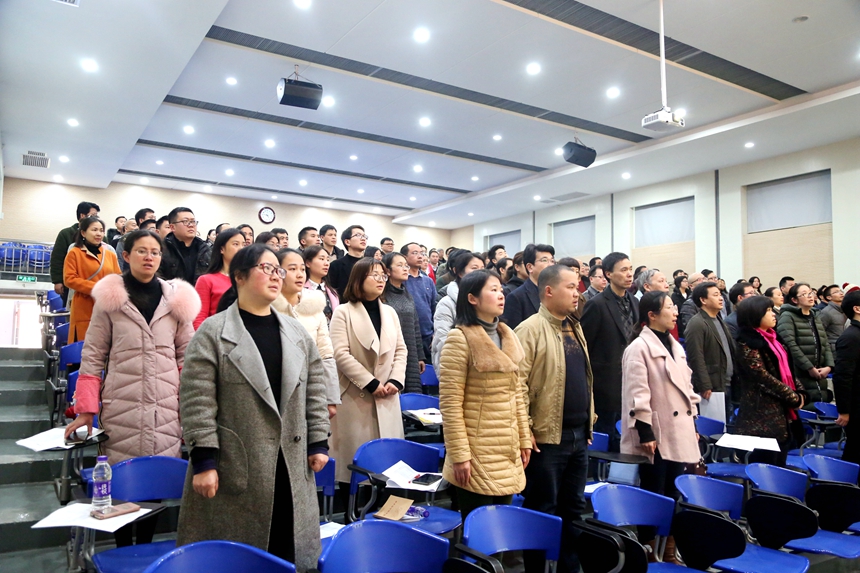 党委书记黄月初做新学期党委工作报告。他首先概括了过去一学期学校党建工作所取得的成效:落实中心组学习制度和“两学一做”常态化制度化要求,落实师德建设、“一岗双责”、中央精准扶贫要求,强化党务机构建设。然后,他阐述了当前的政治形势,对新学期的党建工作作出具体部署:全体党员要深入贯彻学习党的十九大精神和全国“两会”精神,全面推进“两学一做”常态化制度化,进一步落实“三会一课”制度,落实工会工作,加强师德师风建设,在岗履职、在岗担责,倡导奉献精神,发扬团队意识,以扎实的工作推进共青团工作和文明创建工作。关于新学期的党建工作要求,黄月初从认清形势、明确责任、规范工作等方面进行了部署,强调支部书记是党建和业务“双带头人”,要以“五好干部”的标准严格要求自己;党员要践行三个标准,发挥先锋模范作用;规范开展工作,实行纪实管理、留痕管理、日常管理。要坚守底线、守纪守法、规范流程,落实党风廉洁建设的各项要求;要加强宣传、正面引导、严格把控,不断提升教职工的制度自信、理论自信、道路自信和文化自信。