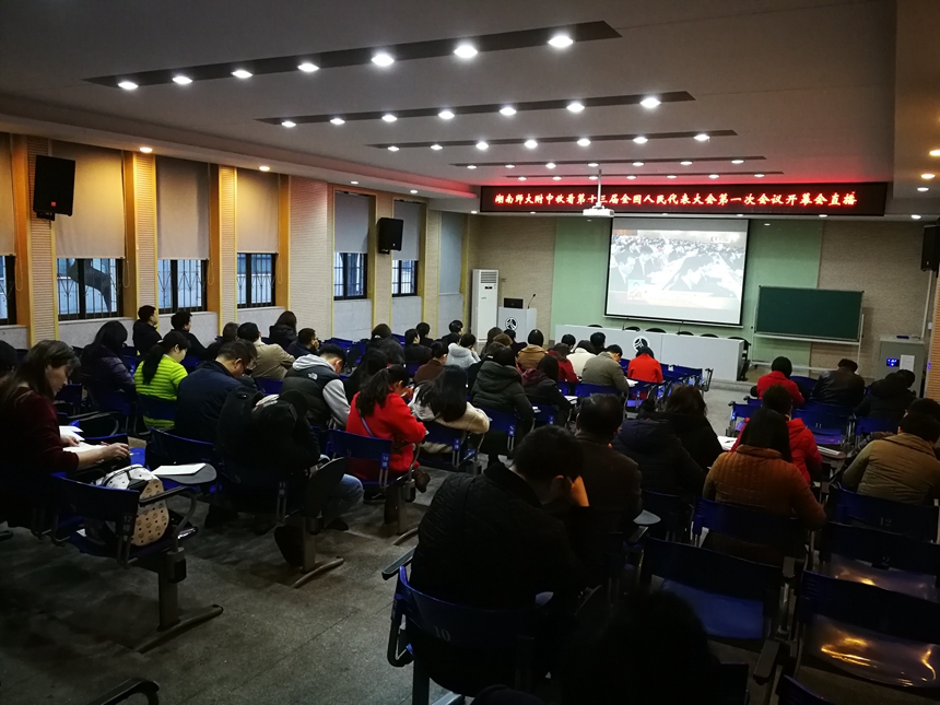 学校党委组织教职工集中观看第十三届全国人民代表大会第一次会议开幕会