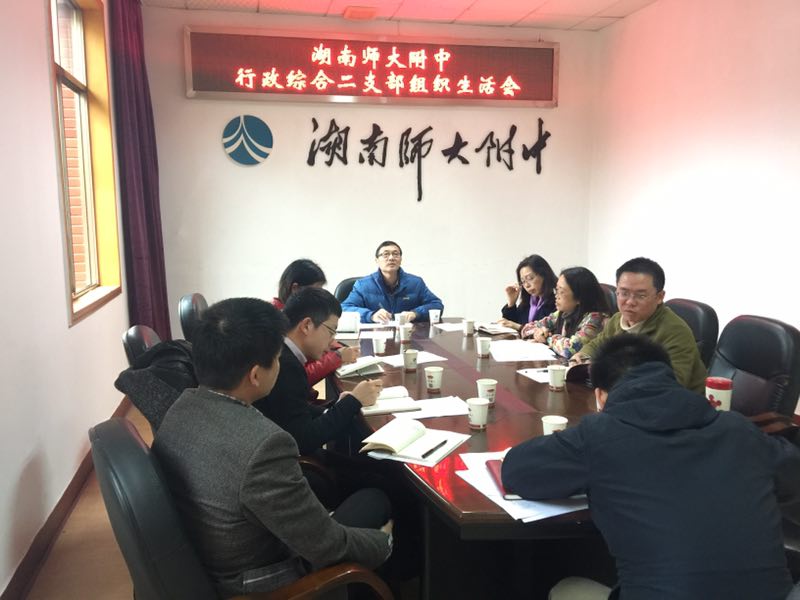 3月21日,湖南师大附中行政综合二支部召开了专题组织生活会,联系支部工作的湖南师大附中党委委员晏荣贵及全体支部党员参加了会议。会议由支部书记左小青主持。